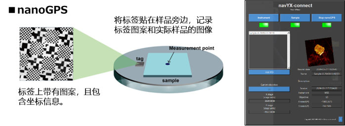 为解决上述问题,HORIBA 公司推出以 nanoGPS 定位芯片为核心,搭配 navYX-connect 软件的一体化解决方案。该技术通过在样品旁固定定位芯片建立统一坐标基准,实现跨设备快速匹配原测试区域,无需人工反复搜寻样品特征,显著简化流程、提升测试效率。