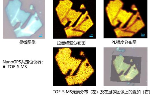 图3. 约10 µm的MoS2薄片在不同显微设备上的跨平台分析