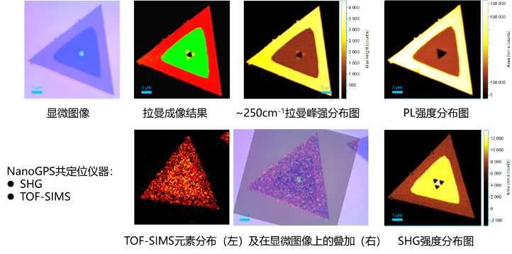 图4. 边长50 µm的二维半导体材料WSe2在不同显微设备上的跨平台分析
